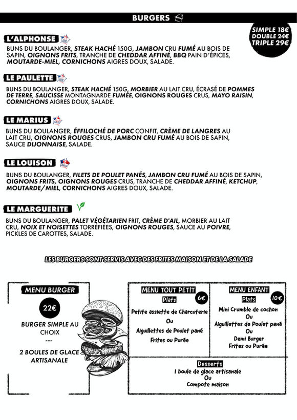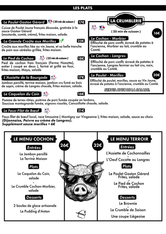 La Carte de notre Restaurant