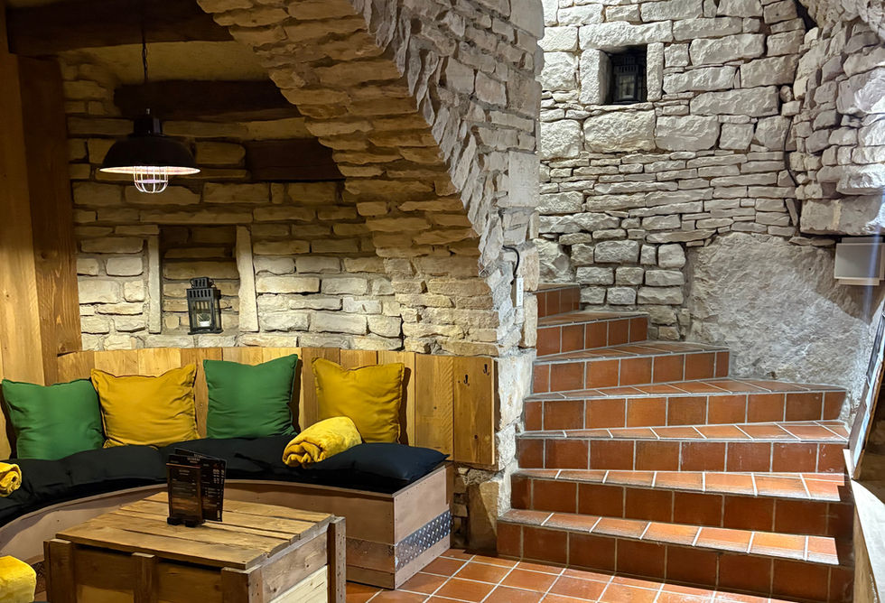 Dans ce lieu du XVIᵉ siècle rénové avec soin, pierres et bois créent une ambiance cosy et conviviale où il fait bon se retrouver.